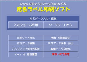 本ソフトは、エーワン(A-one)社の10面ラベルシール(品番28912)を宛名ラベルシールとして利用する為の宛名ラベル印刷ソフトです。本ソフトの主な特長は以下の通りです。
